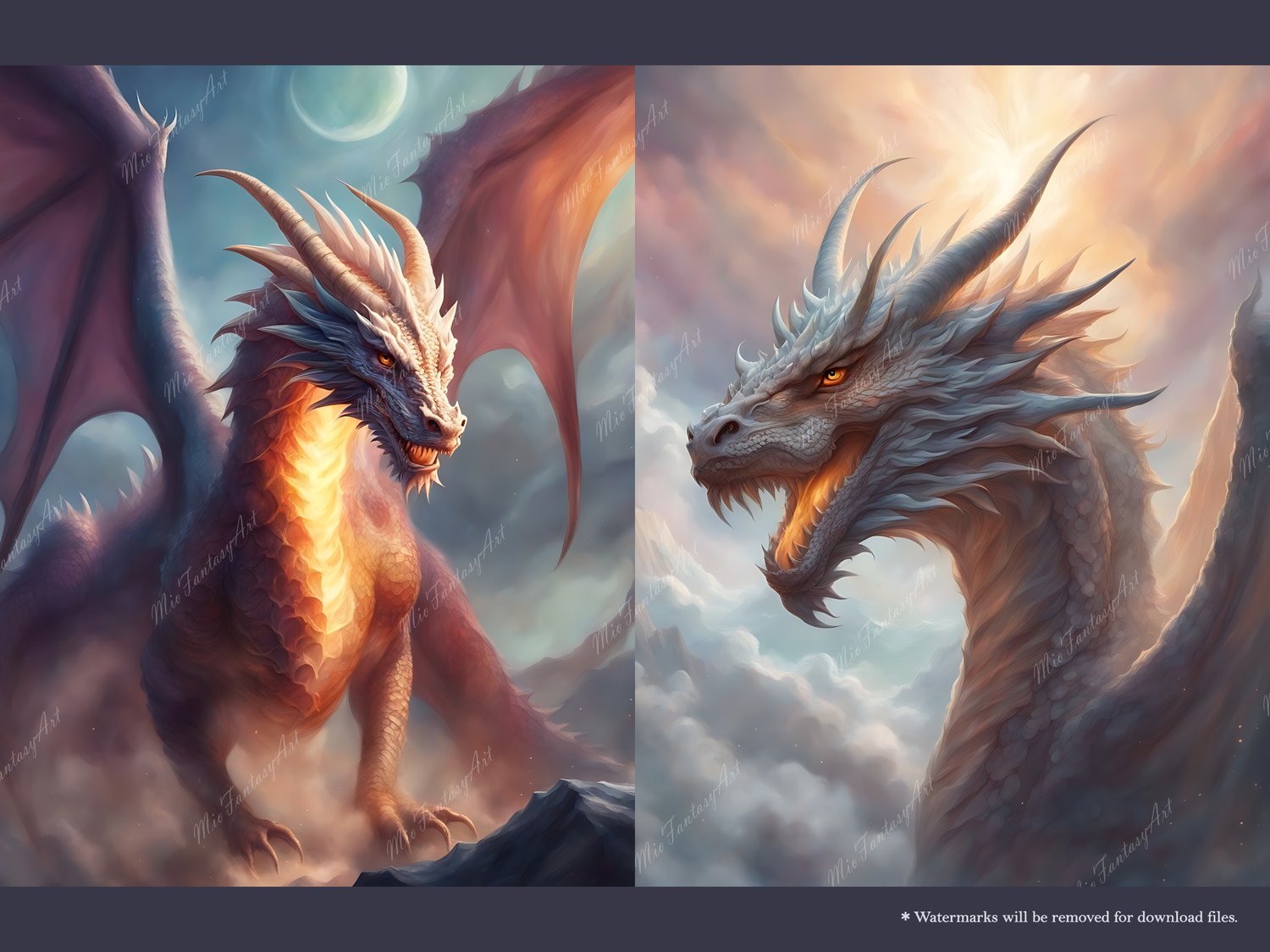 Transform your space into a magical realm with this enchanting Fantasy Art Dragon Bundle! This bundle includes dragon-themed wallpapers that are perfect for adding a touch of mystique to your scrapbook, journal, or stationary. Each design features intricate details and vivid colors that will transport you to a world of fantasy and wonder. This digital download is a must-have for any dragon enthusiast looking to infuse their projects with a dash of whimsy and imagination.