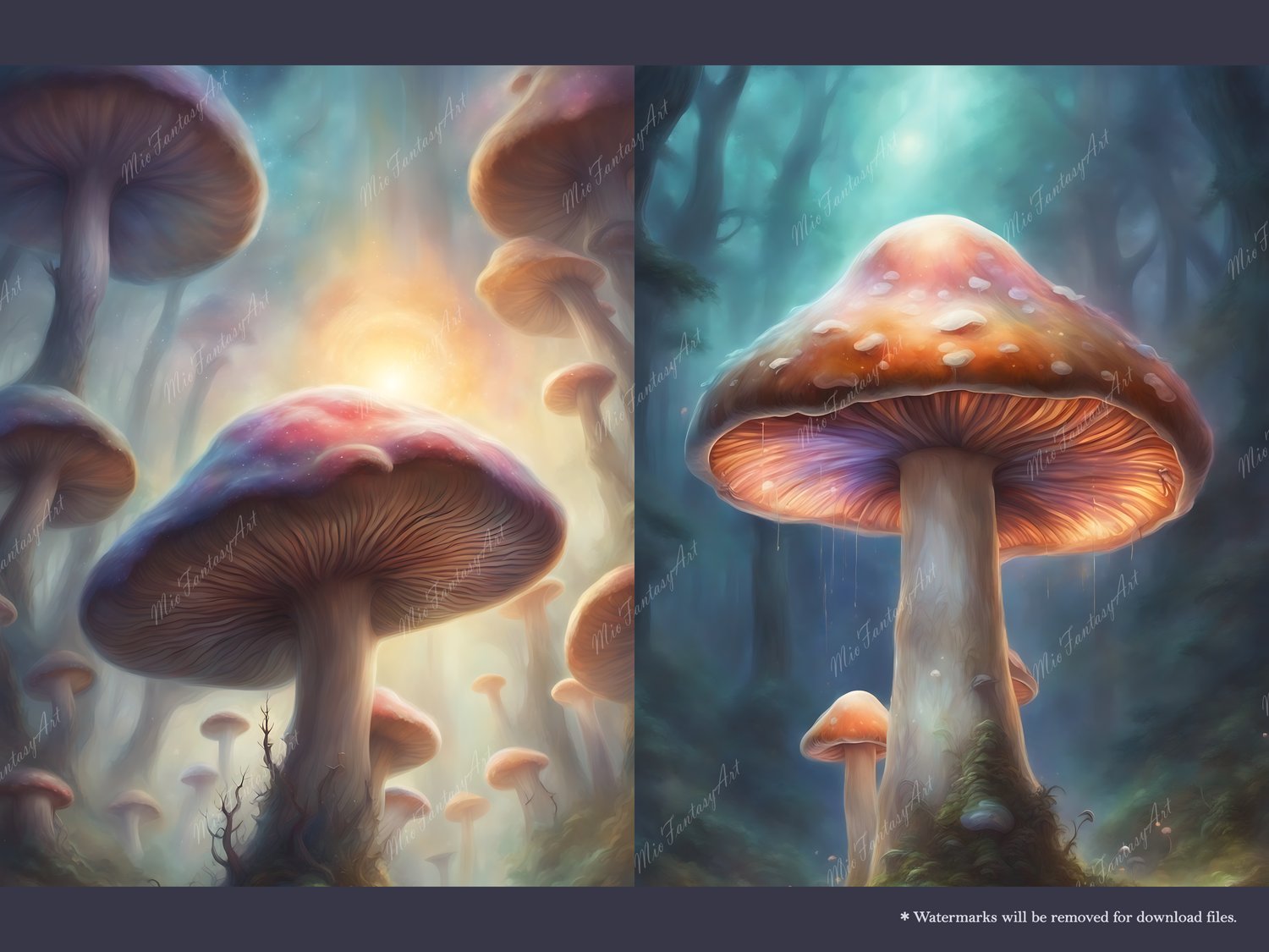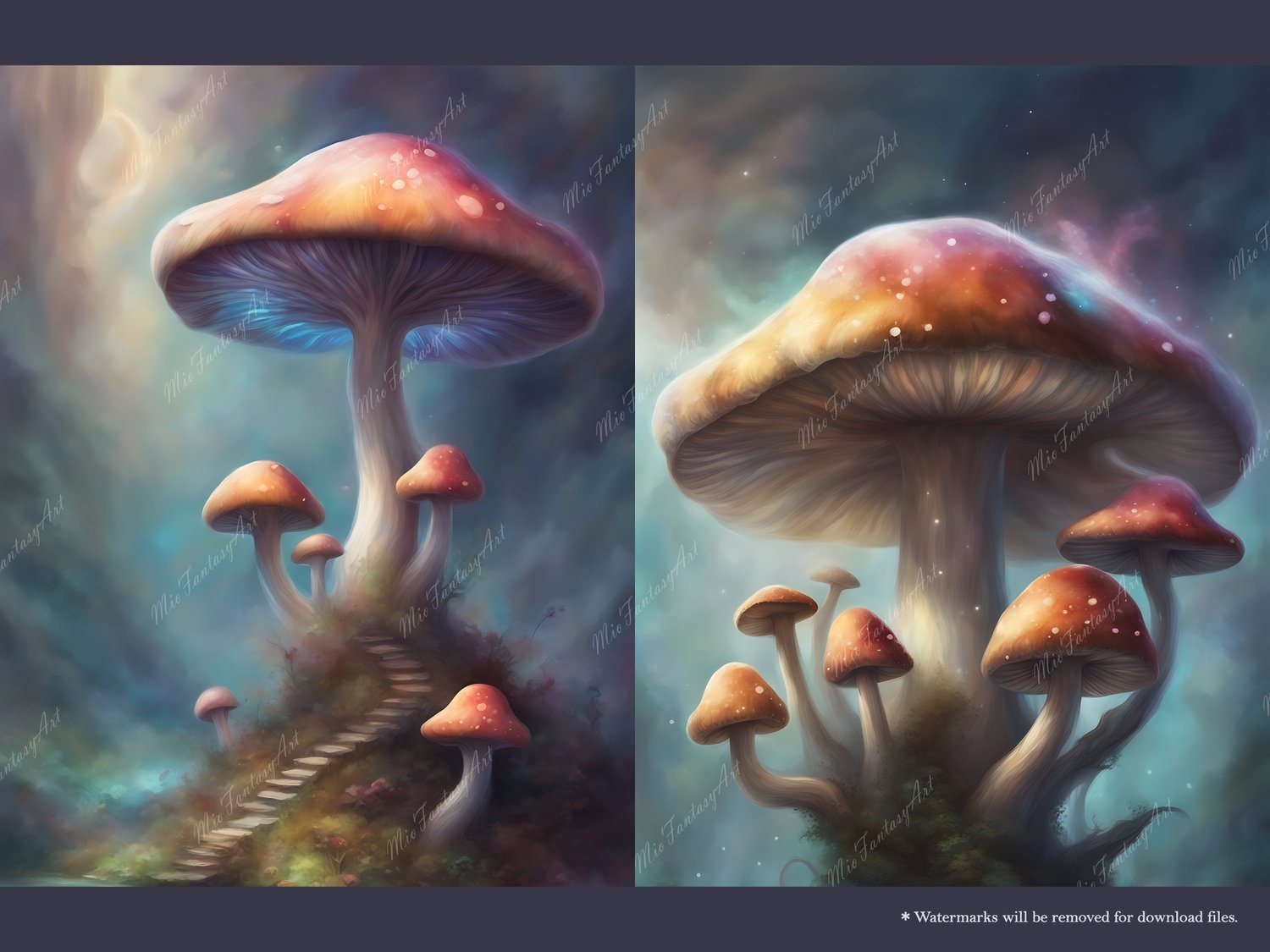 Fantasy Art Mushroom Bundle 4, Magical Mushroom Wallpaper Printable Background For Scrapbook Journal Stationary Digital Download
