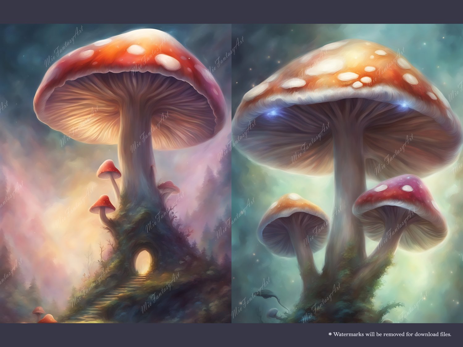 Introducing a magical Fantasy Art Mushroom Bundle for all the nature lovers and whimsical souls out there! This charming set includes a variety of vibrant mushrooms ideal for adding a touch of enchantment to your creative projects. Use these unique illustrations as a stunning Mushroom Wallpaper, a delightful Printable Background for your scrapbook or journal, or even as charming stationery for your correspondence. This digital download is perfect for adding a pop of color and fantasy to your artwork. Let your imagination run wild with this Mushroom Bundle!