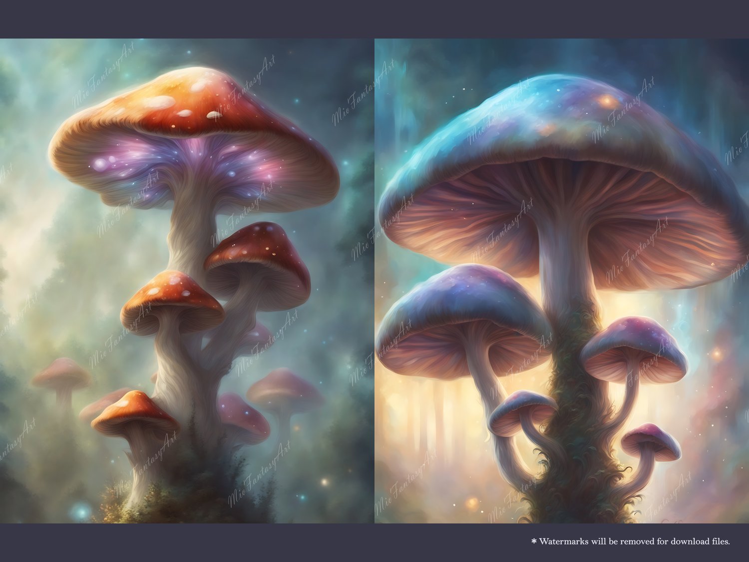 Fantasy Art Mushroom Bundle 7, Magical Mushroom Wallpaper Printable Background For Scrapbook Journal Stationary Digital Download