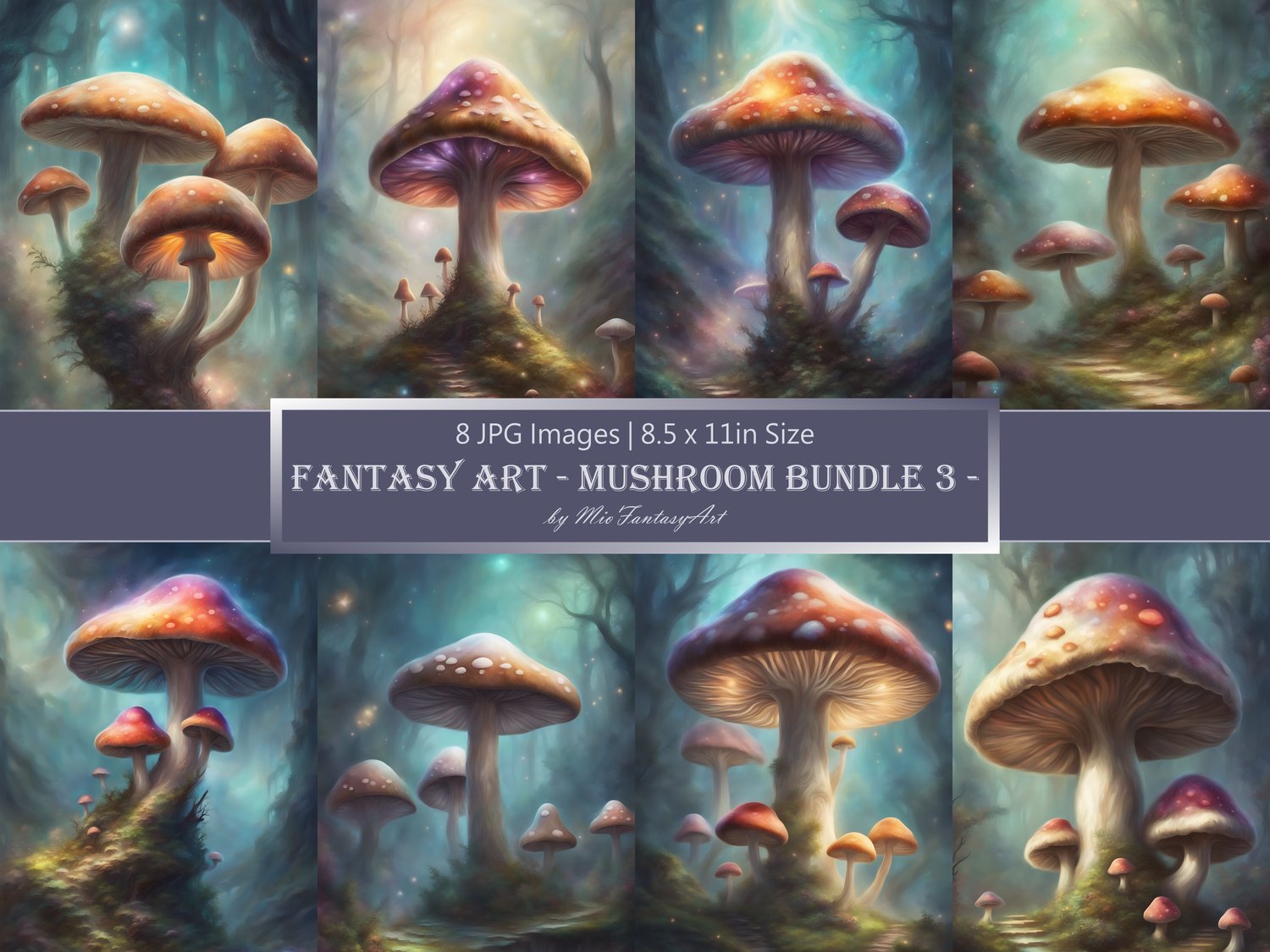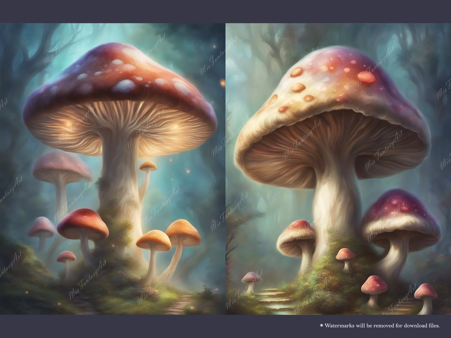 Fantasy Art Mushroom Bundle 3, Magical Mushroom Wallpaper Printable Background For Scrapbook Journal Stationary Digital Download