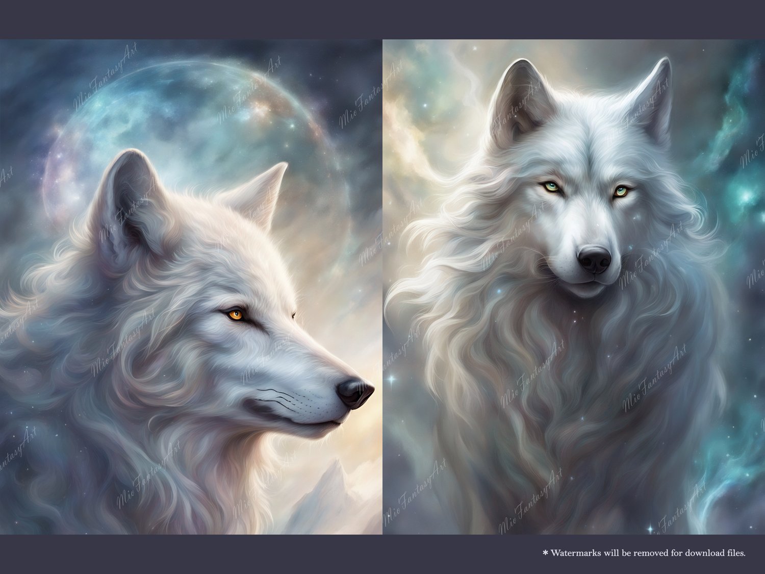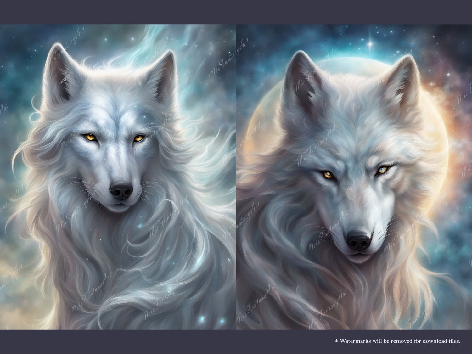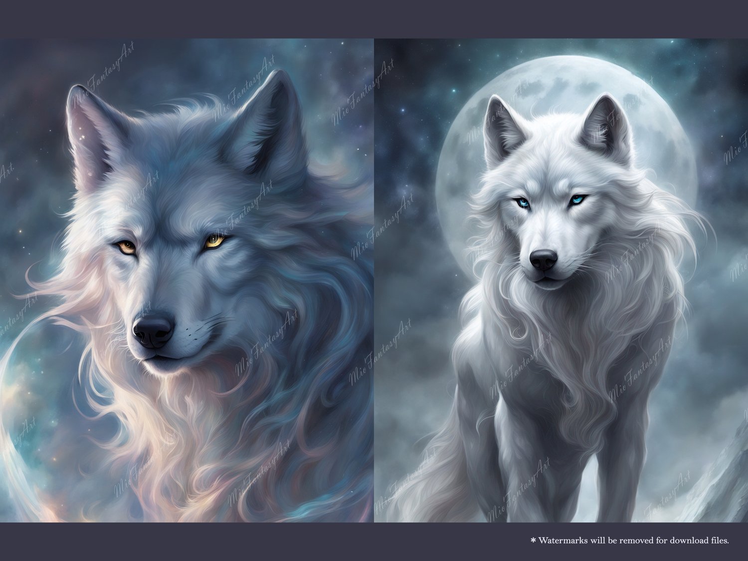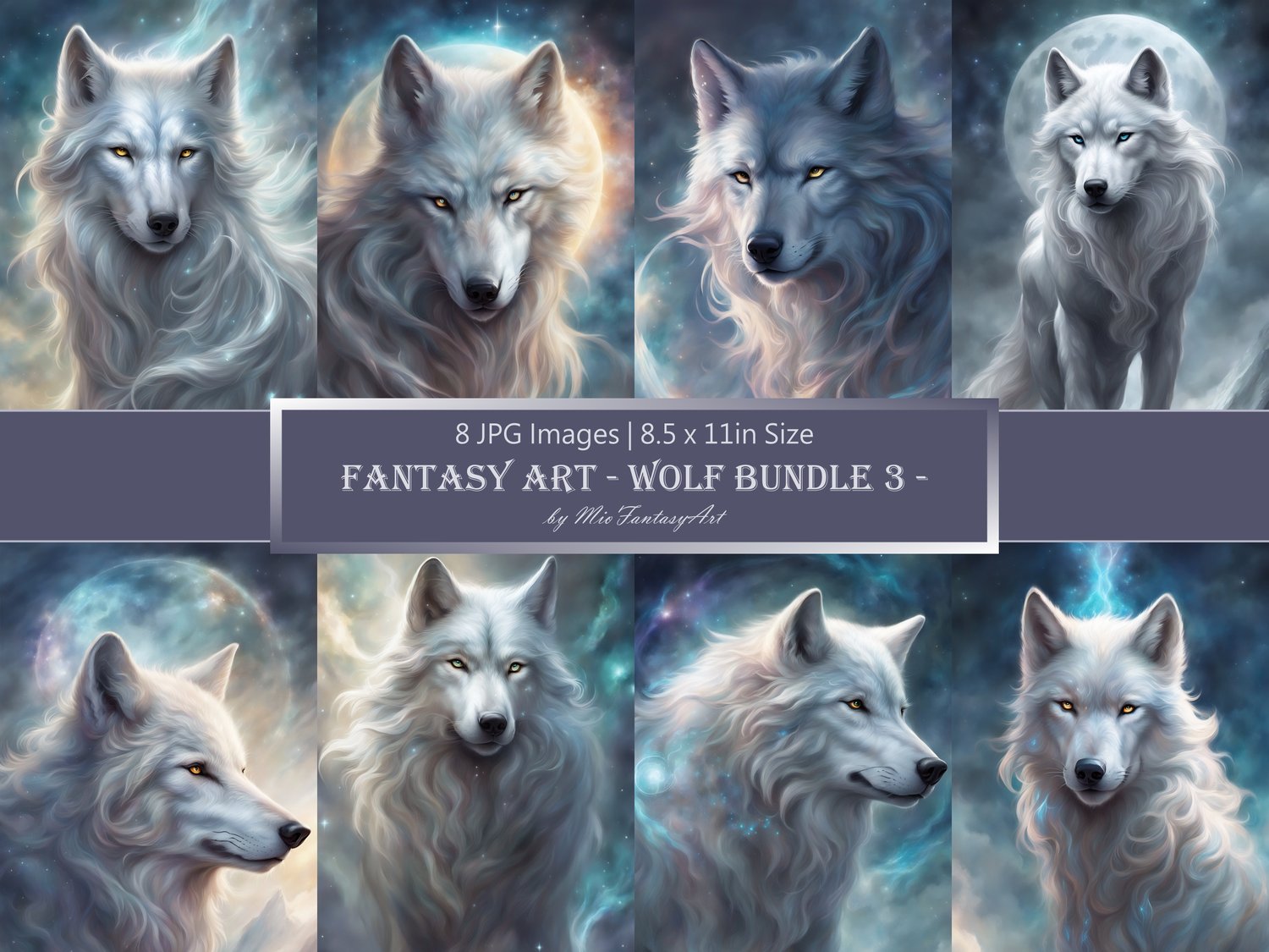 Fantasy Art Wolf Bundle 3 - Silver Moon Wallpaper Printable Background For Scrapbook Journal Stationary Digital Download
