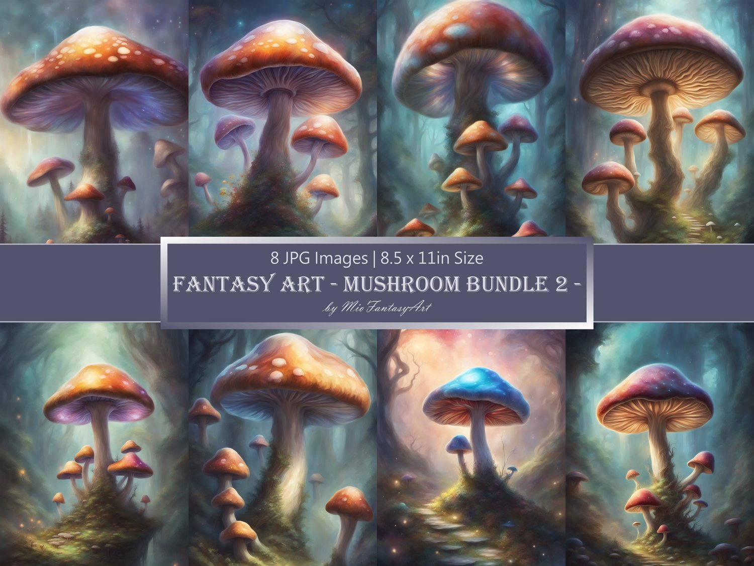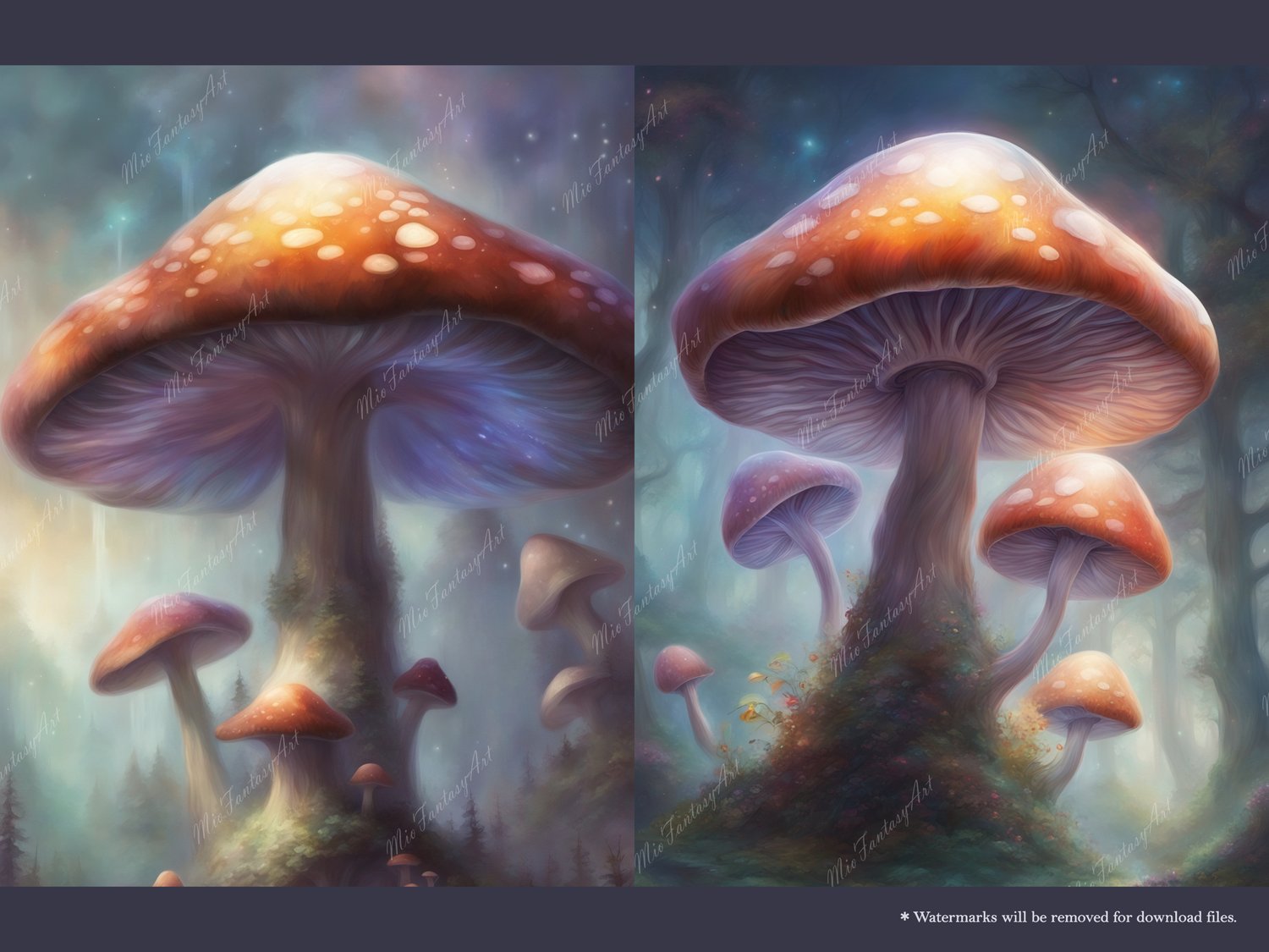 Fantasy Art Mushroom Bundle 2, Magical Mushroom Wallpaper Printable Background For Scrapbook Journal Stationary Digital Download