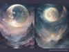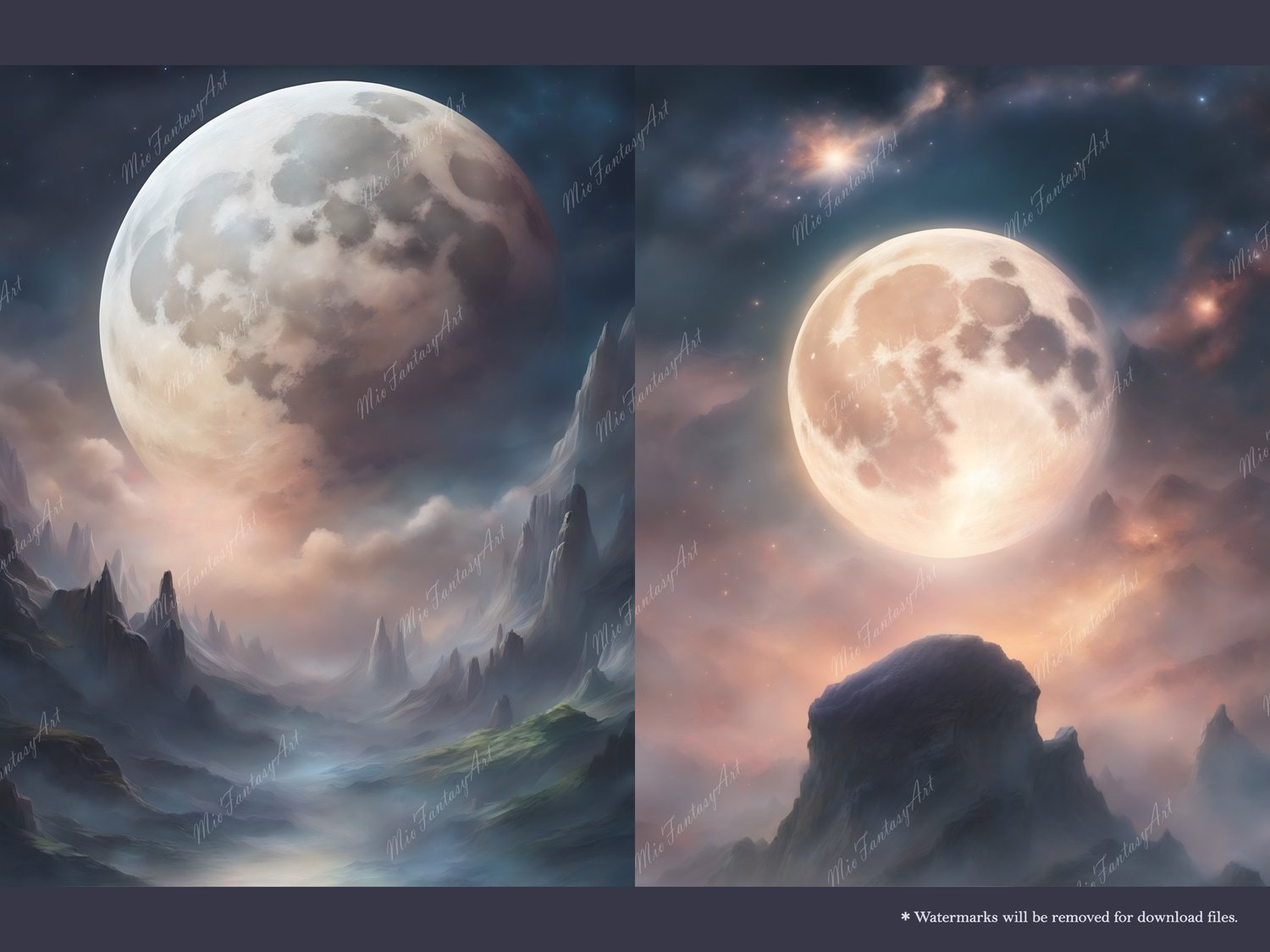 Fantasy Art Moon Bundle 1 - Full Moon Wallpaper Printable Background For Scrapbook Journal Stationary Digital Download