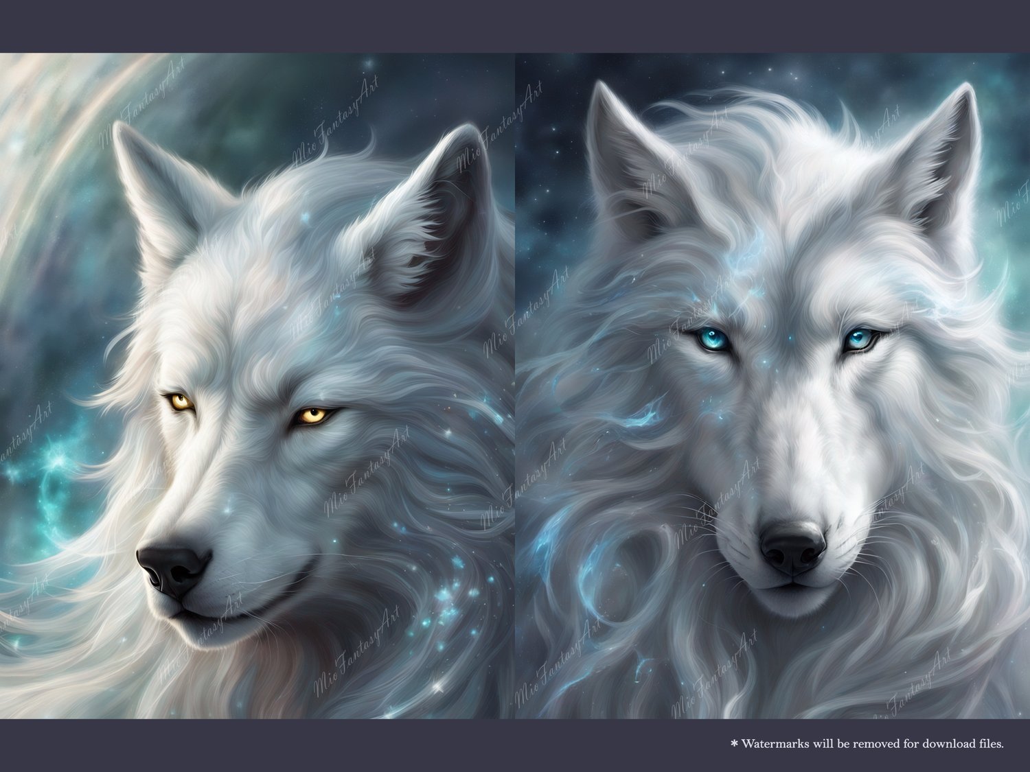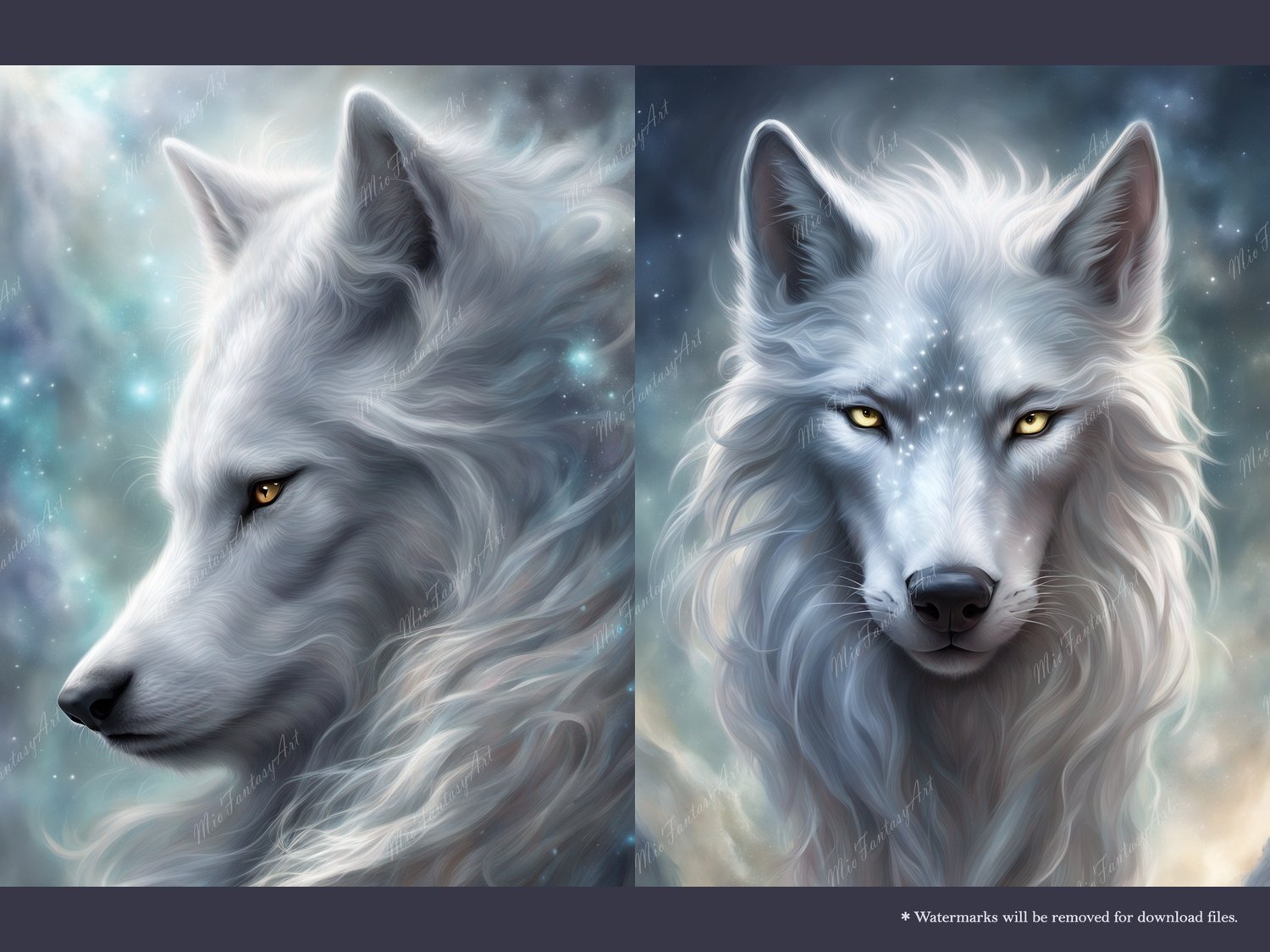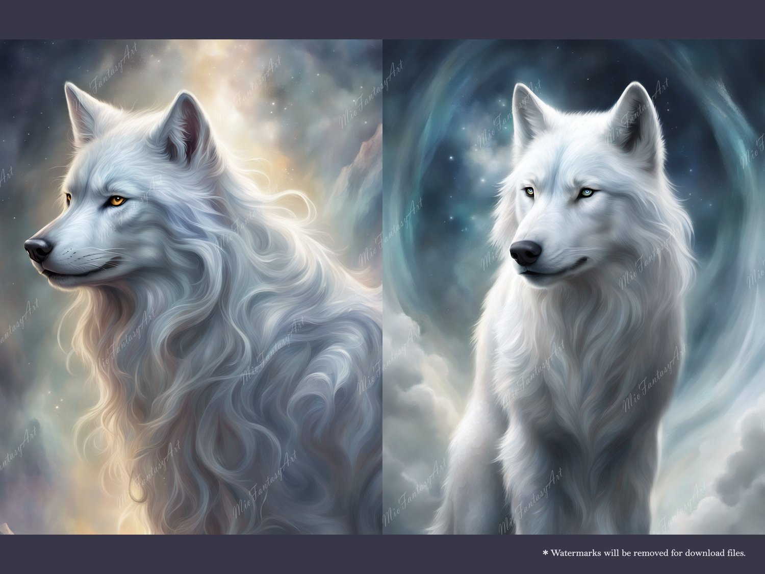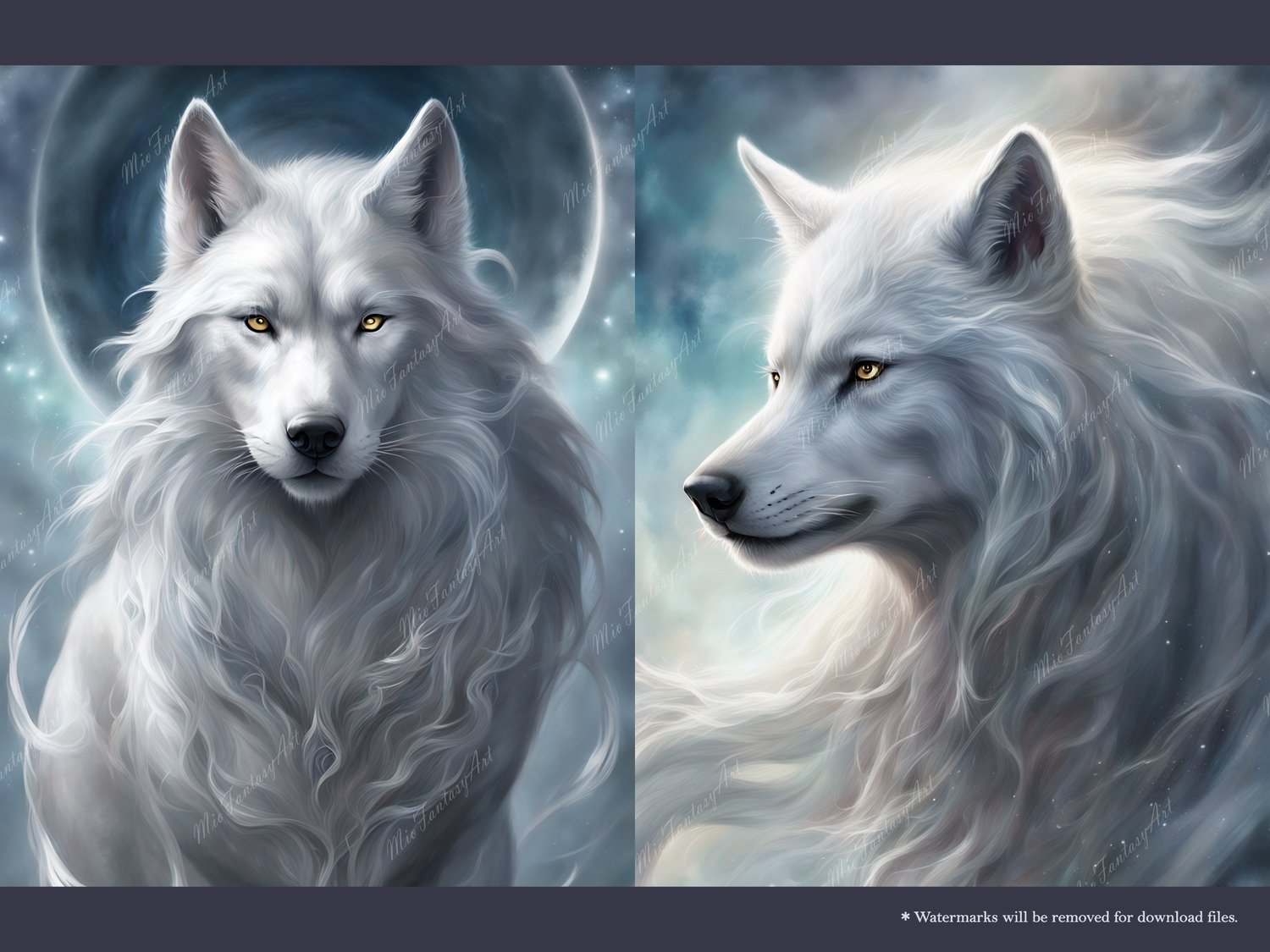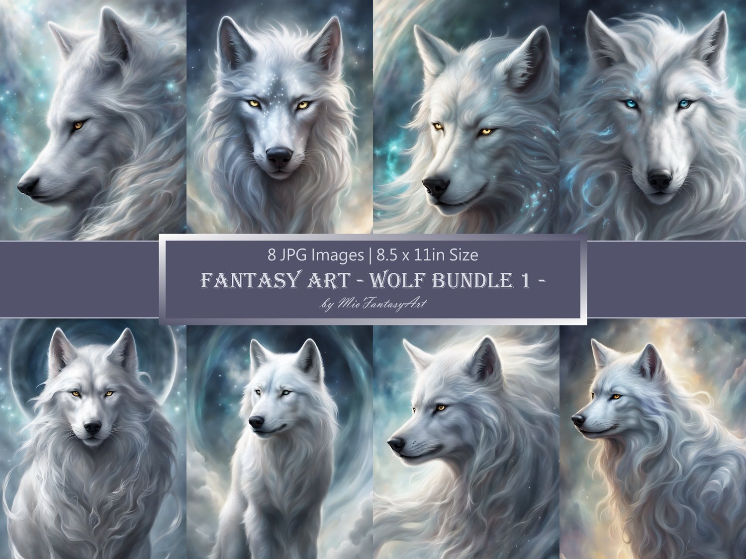 Fantasy Art Wolf Bundle 1 - Silver Wolf Wallpaper Printable Background For Scrapbook Journal Stationary Digital Download