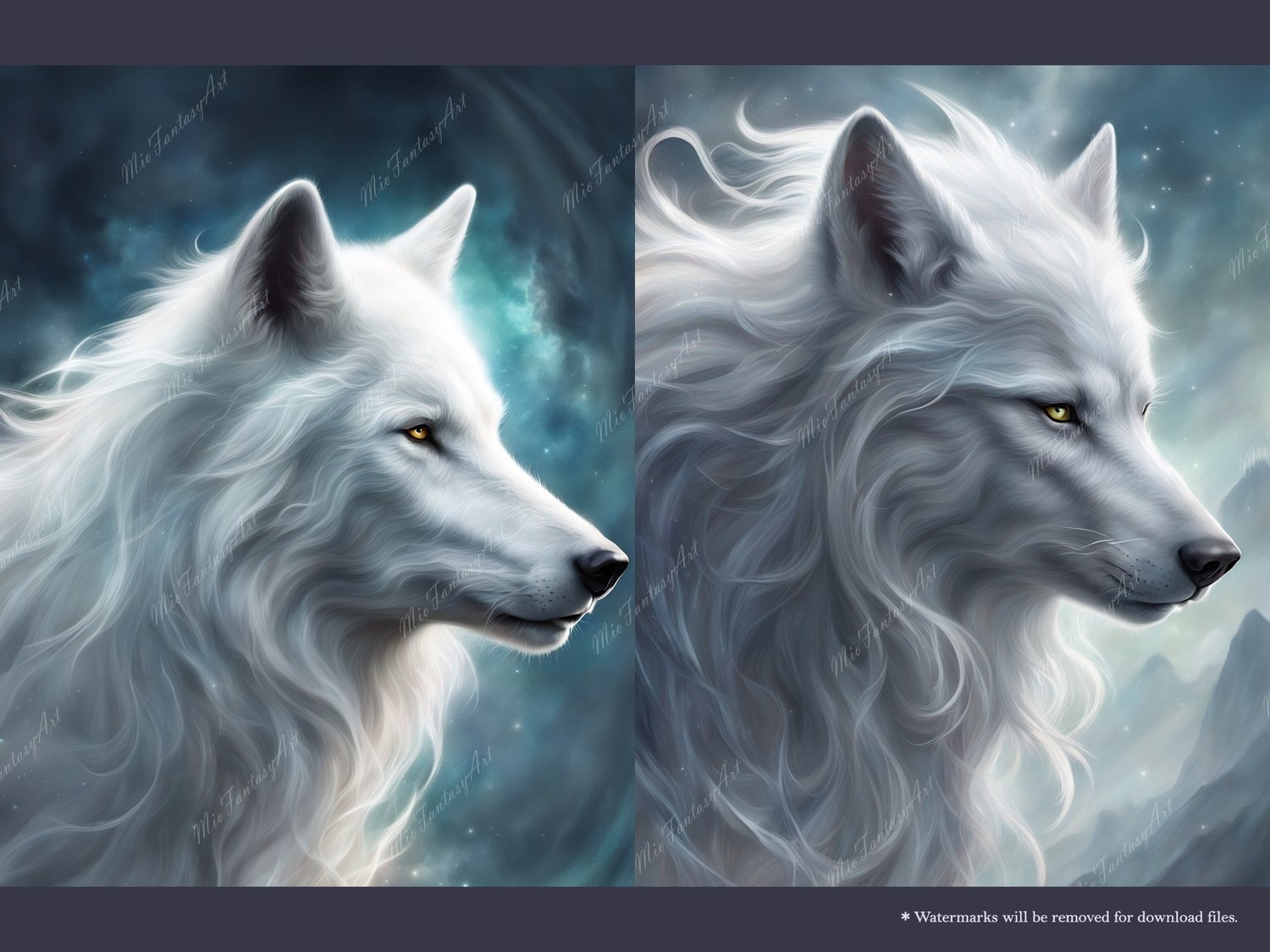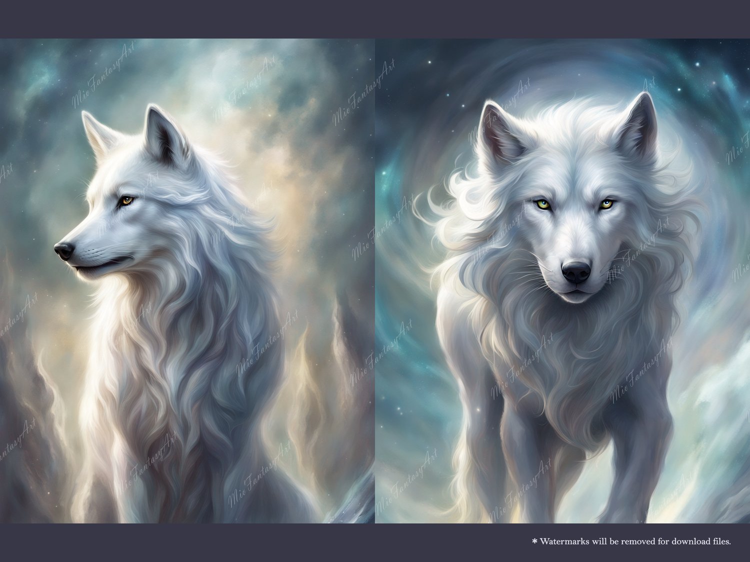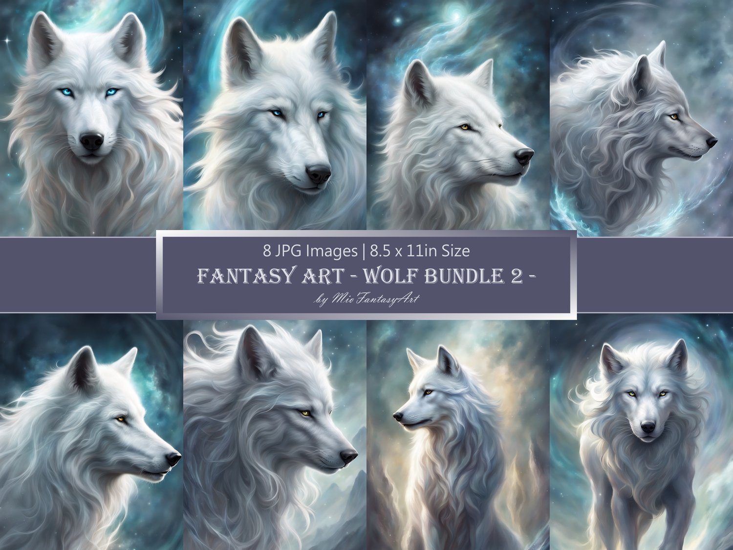 Fantasy Art Wolf Bundle 2 - Silver Wolf Wallpaper Printable Background For Scrapbook Journal Stationary Digital Download