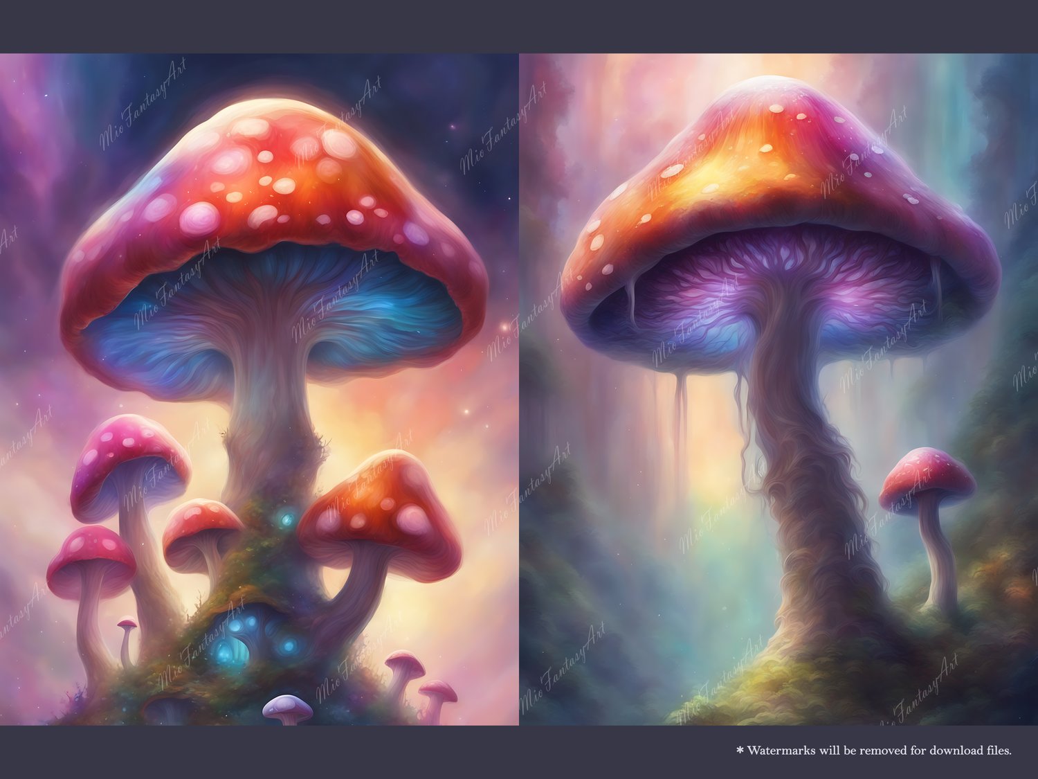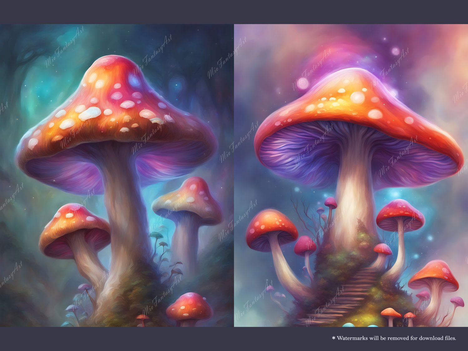 Introducing a magical Fantasy Art Mushroom Bundle for all the nature lovers and whimsical souls out there! This charming set includes a variety of vibrant mushrooms ideal for adding a touch of enchantment to your creative projects. Use these unique illustrations as a stunning Mushroom Wallpaper, a delightful Printable Background for your scrapbook or journal, or even as charming stationery for your correspondence. This digital download is perfect for adding a pop of color and fantasy to your artwork. Let your imagination run wild with this Mushroom Bundle!