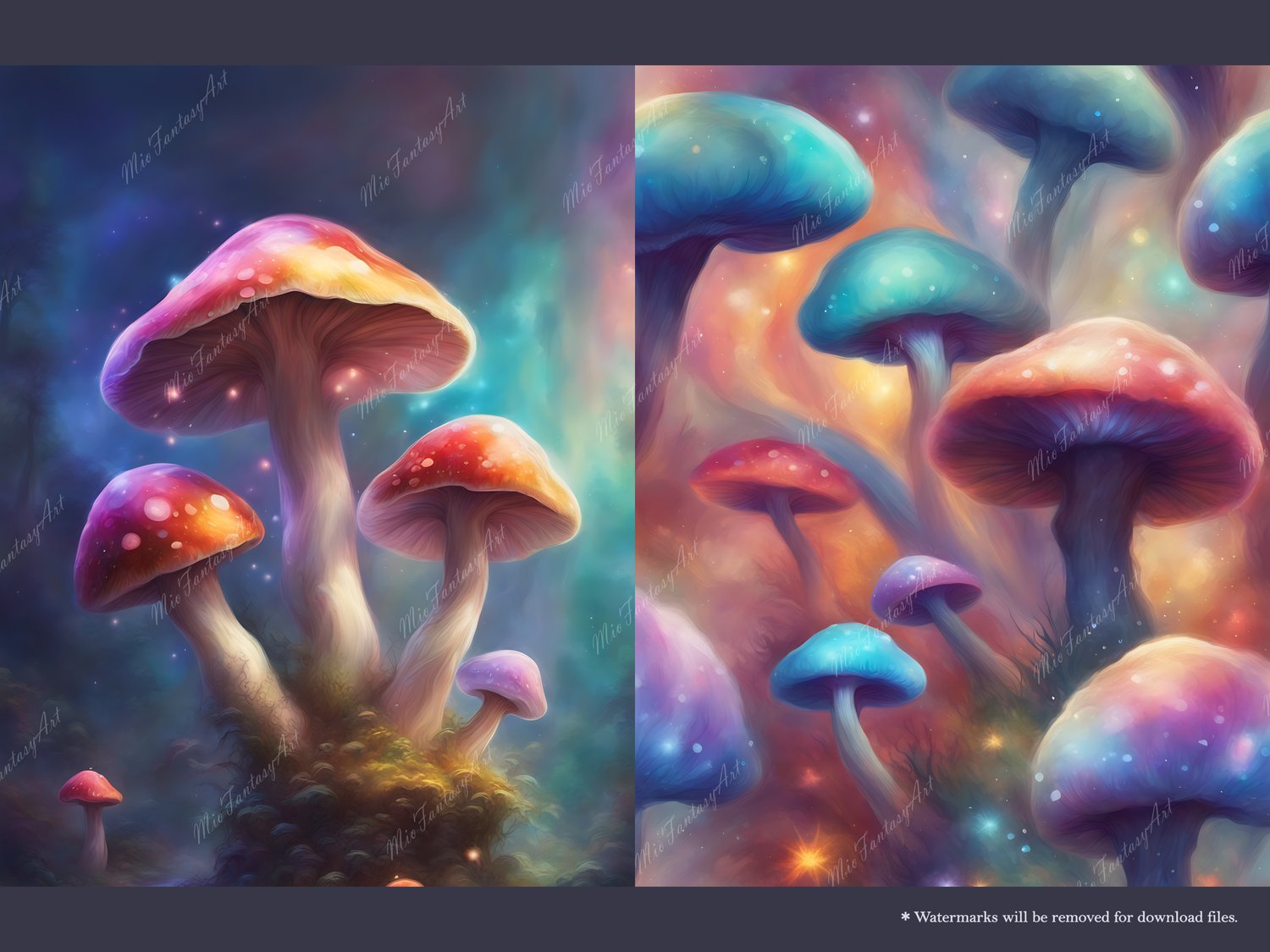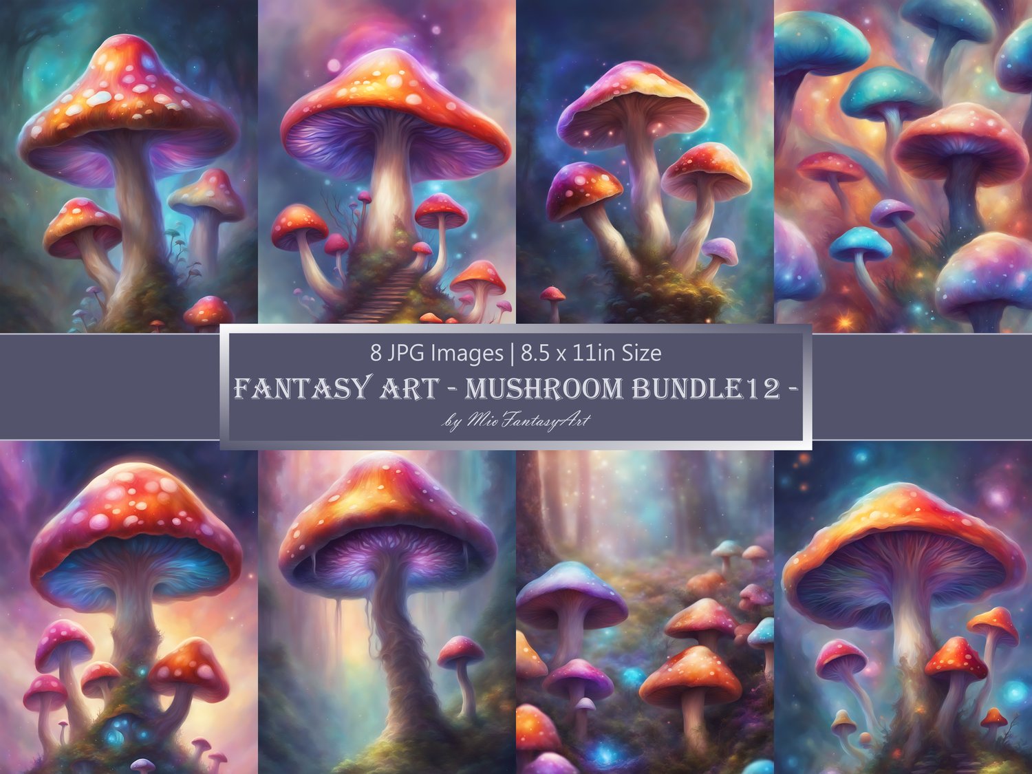 Fantasy Art Mushroom Bundle 12, Magical Mushroom Wallpaper Printable Background For Scrapbook Journal Stationary Digital Download