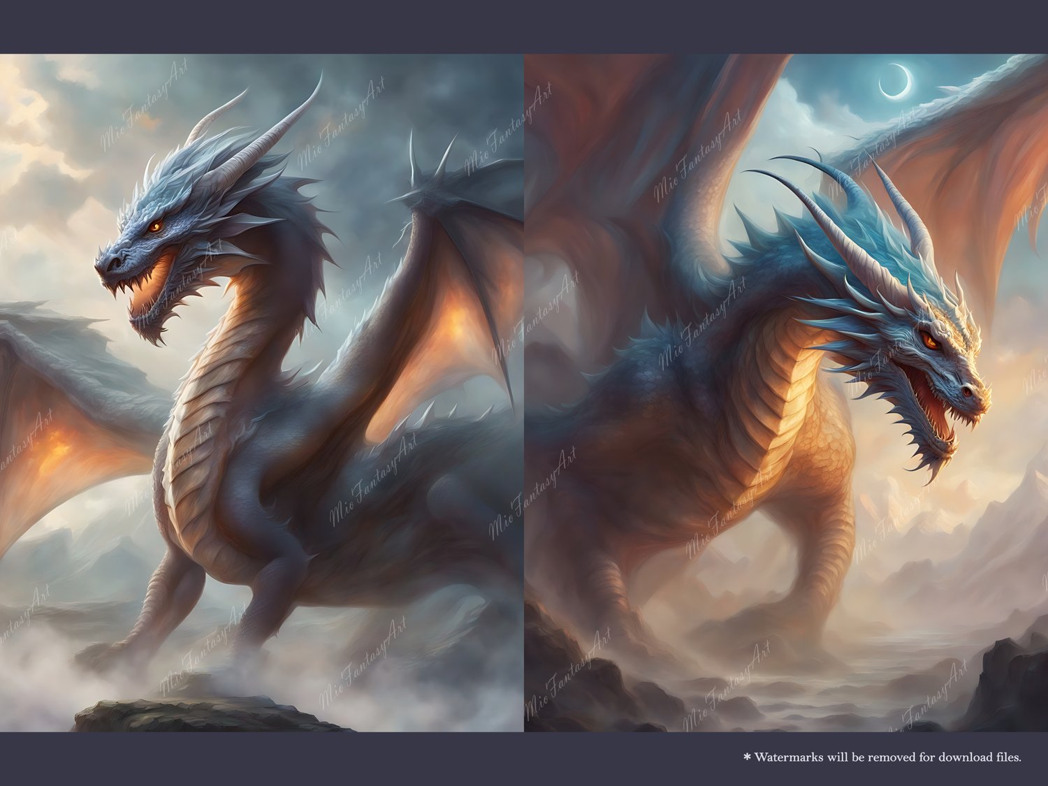 Fantasy Art Dragon Bundle 1 - Wallpaper Printable Background For Scrapbook Journal Stationary Digital Download