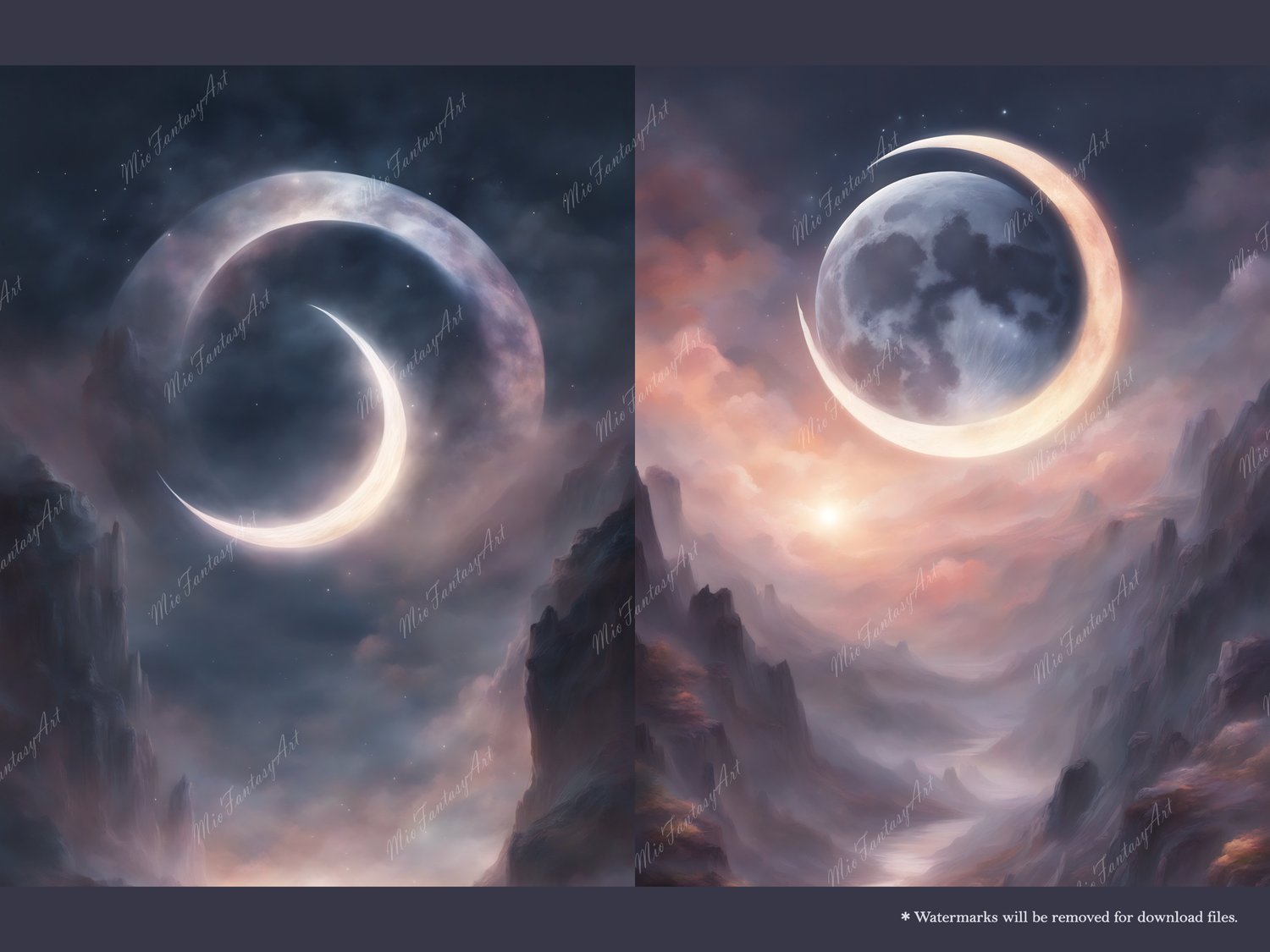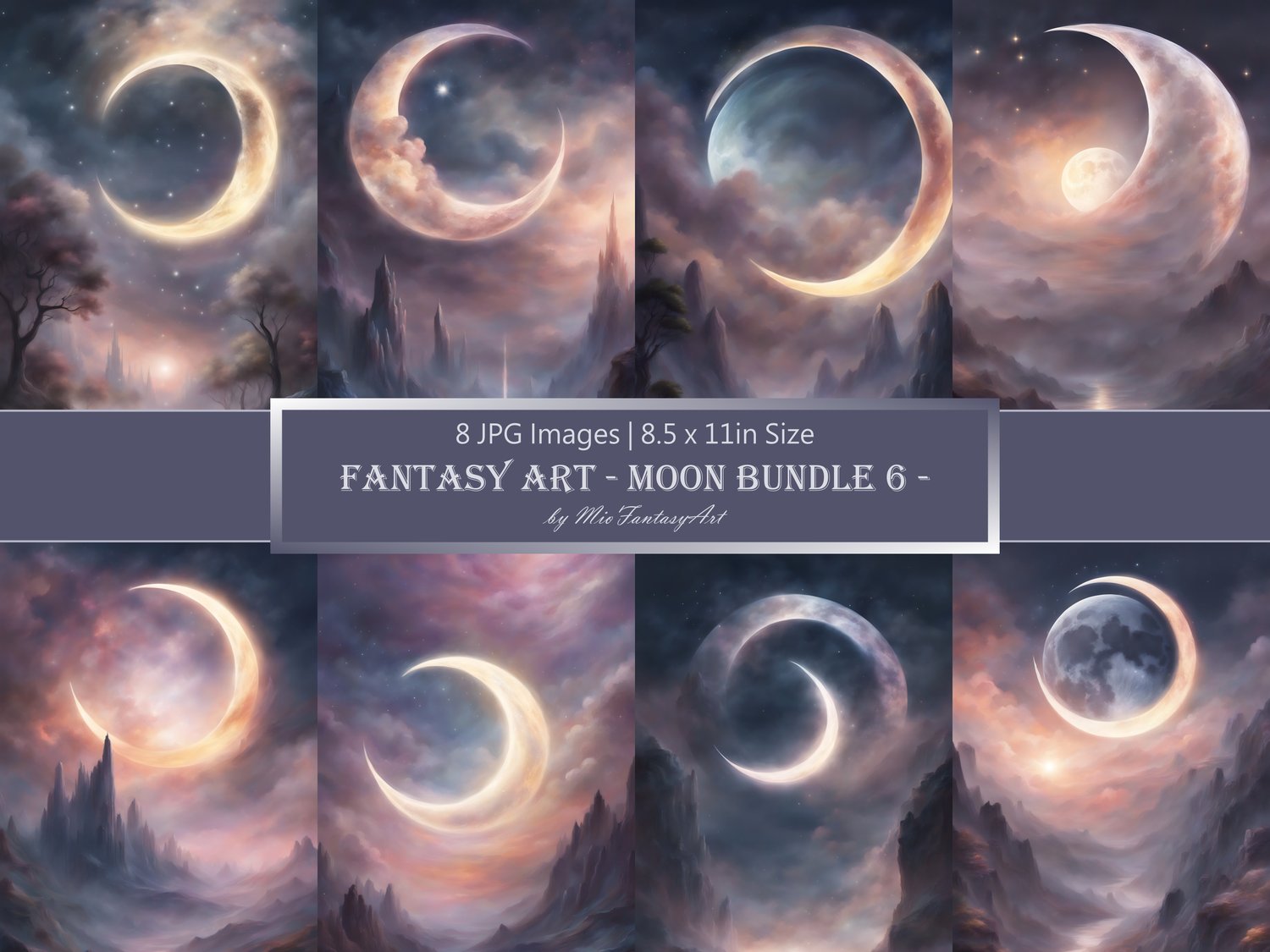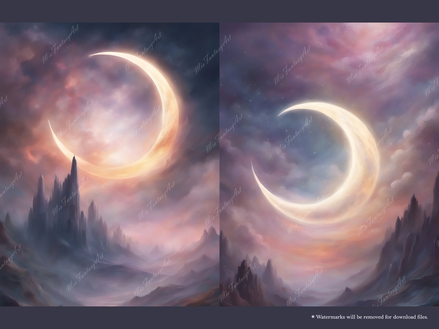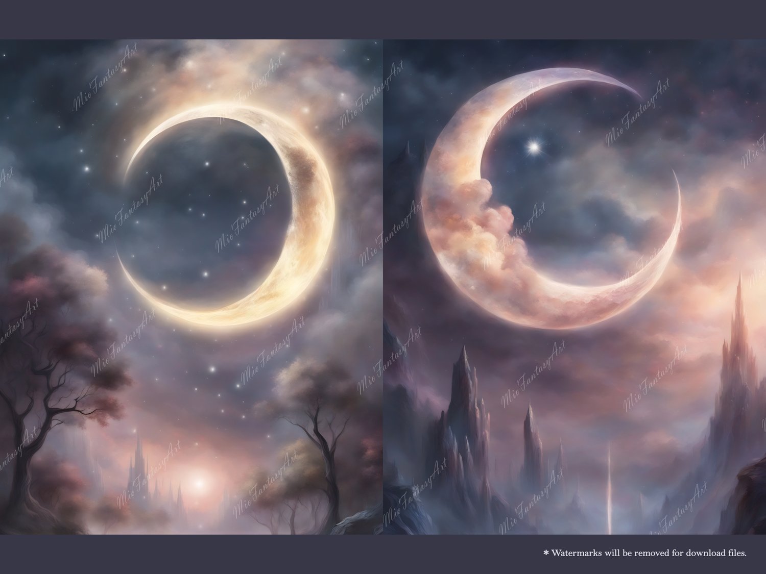 Fantasy Art Moon Bundle 6 - Crescent Moon Wallpaper Printable Background For Scrapbook Journal Stationary Digital Download